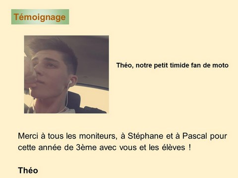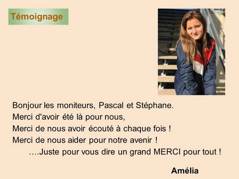 Encore merci à tous et aux moniteurs qui savent écouter les jeunes au cas par cas et qui les encadrent dans leur formation jusqu'au bout.