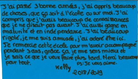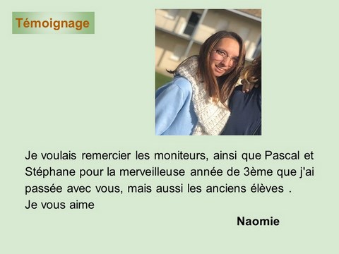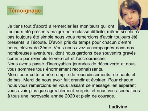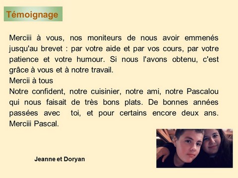 Témoignage réalisé à l'occasion de la remise des diplômes le 06/12/2019 sur un powerpoint souvenir présenté par les élèves.